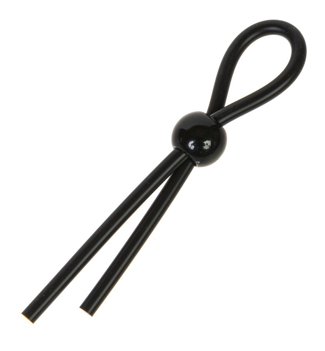 Черное эрекционное лассо с 1 бусиной для утяжки. Обеспечивает усиление эрекции и увеличивает длительность интимной близости.