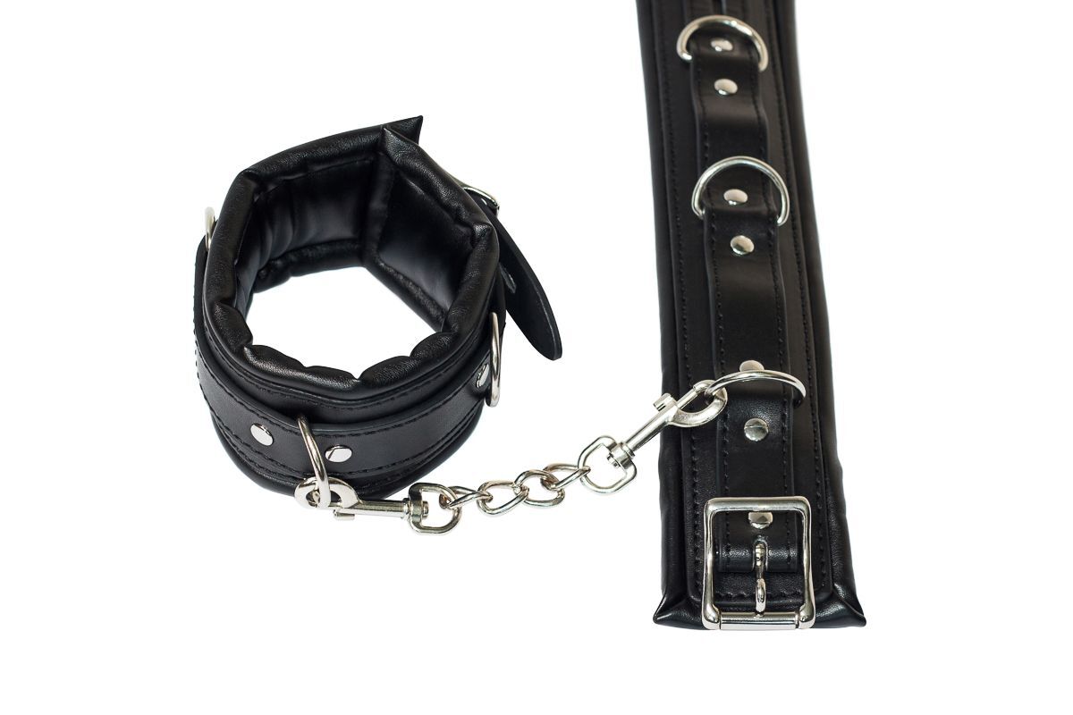 Обезоружить партнера и показать ему, кто сегодня руководит сценарием, можно с помощью одного простого приспособления - поножей. Натуральный материал нежно захватывает ногу в приятный плен, подчеркивая изысканность и пикантность ситуации, и дарит совершенно новые ощущения, связанные с невозможностью полноценно двигаться. Если же жертвой сегодня будете не Вы, то сможете вдоволь насладиться и поиграть с каждой частью тела своего пленника. Поножи очень прочные, поэтому Вы можете прикрепить их к любому элементу мебели, возле которого будет разгораться ваша страстная игра. Ширина - 6 см.