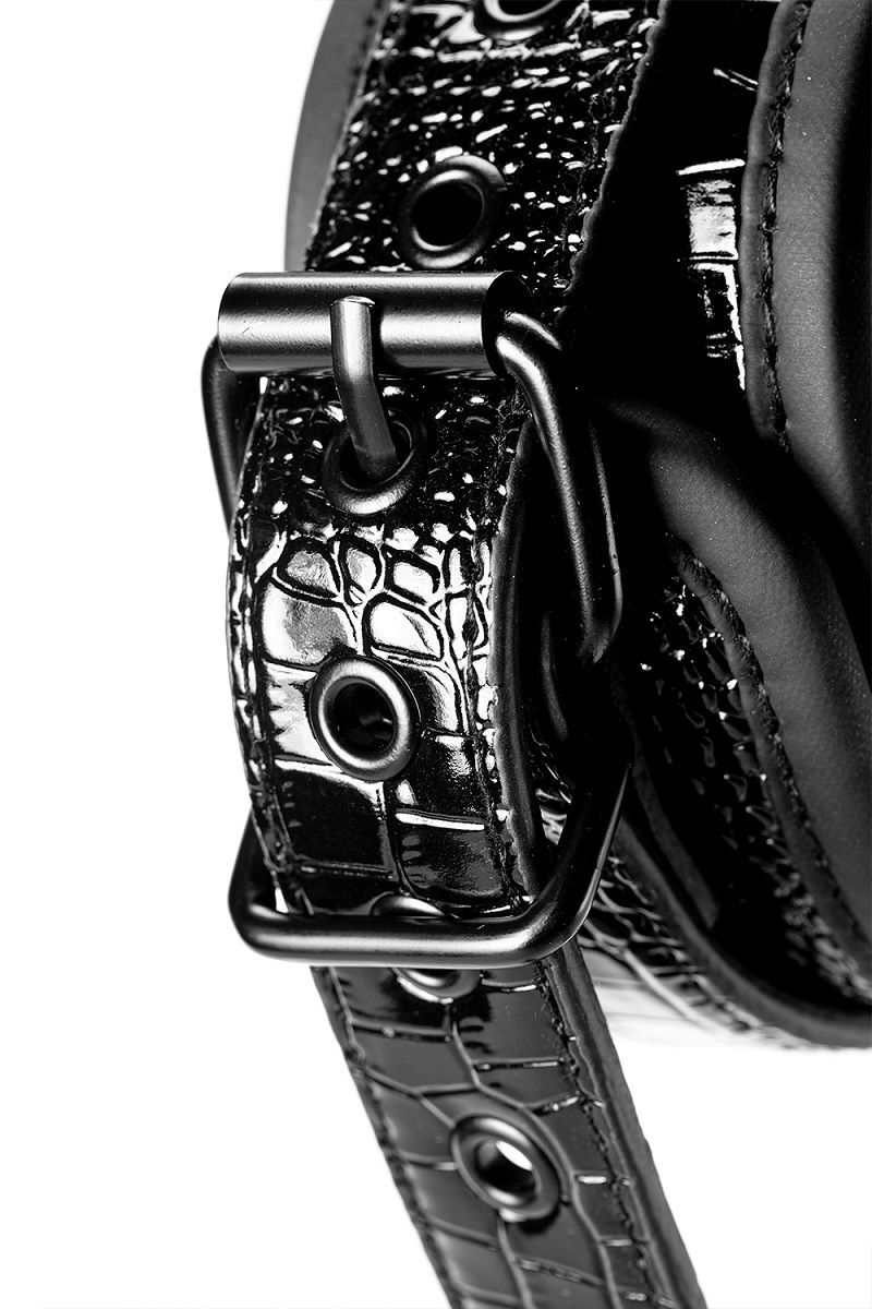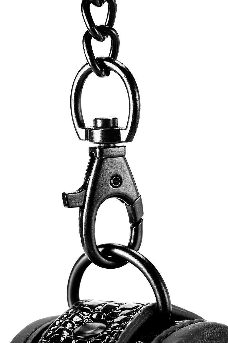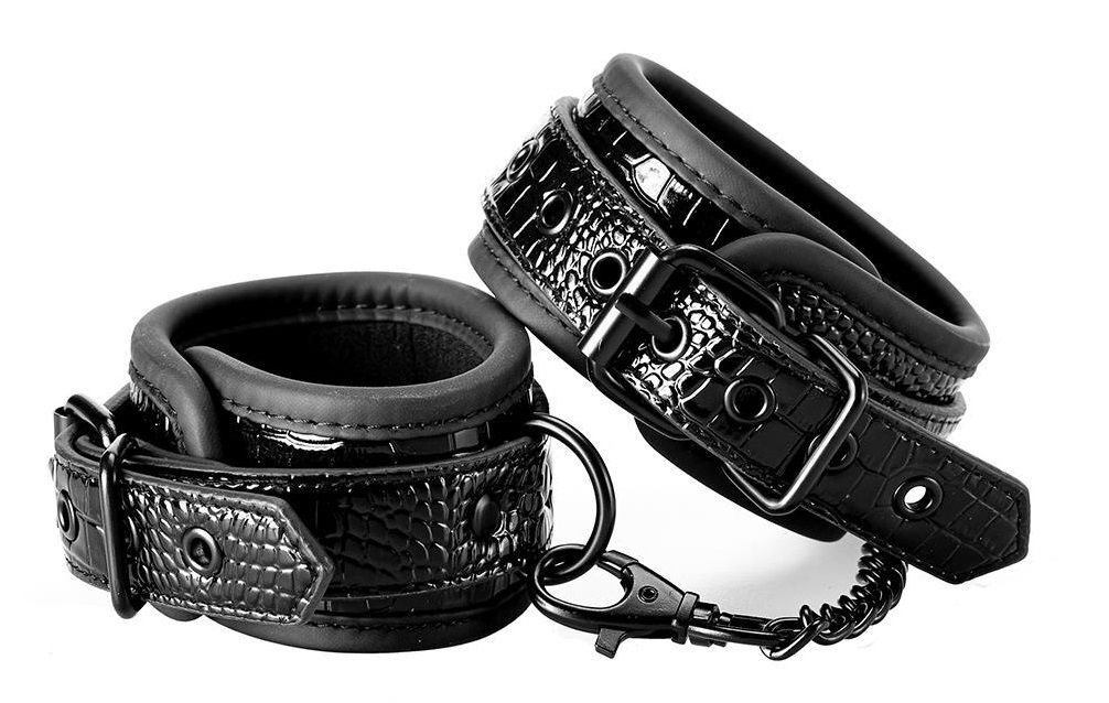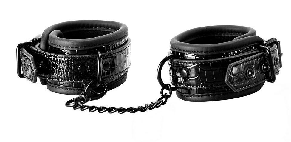 Пара стильных манжет на щиколотках из материала, имитирующего кожу, с гладким и блестящим рисунком под крокодиловую кожу. Они имеют фурнитуру без никеля и подкладку из мягкого, но прочного неопрена для сексуальной и комфортной игры. Манжеты на щиколотках полностью регулируются с помощью простых пряжек в виде ремня. Цепочка отстегивается с одной стороны с помощью мушкетного крючка. Длина цепочки - 12 см.