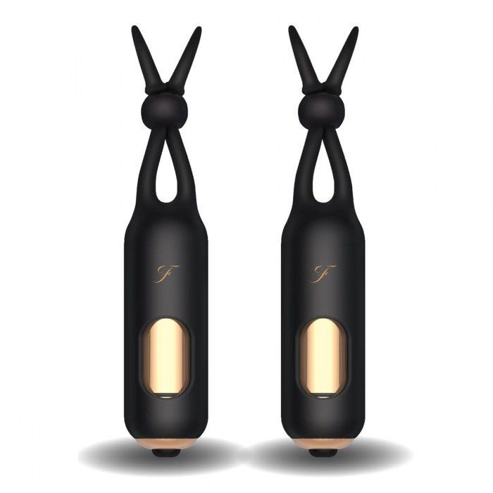 Красивые массажеры для стимуляции сосков из черного бархатистого силикона и вибропулек цвета розового золота. Размер петельки для сосков регулируются с помощью пластиковой бусины.