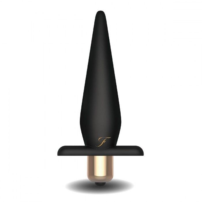 Анальная плаг особой формы для удобного введения, с малым диаметром на кончике. Вибрация работает от вибропульки цвета розового золота. Диаметр кончика - 0,5 см. Рабочая длина - 10 см.