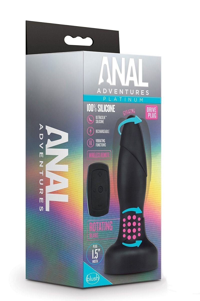 Анальный вибратор Drive Plug с пультом. 10 функций вибрации, 5 режимов вращения, 5 скоростей вращения бусин. Магнитная зарядка в комплекте. Рабочая длина - 10,1 см.
