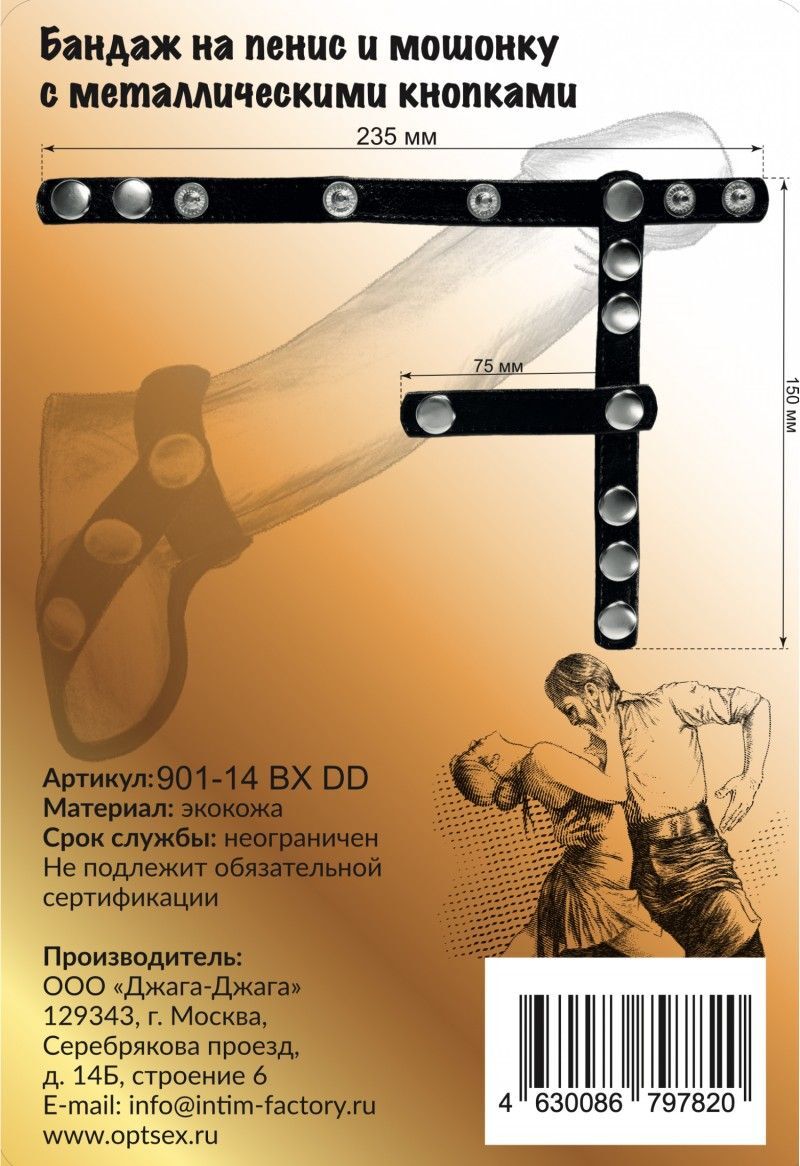 Этот бандаж на пенис и мошонку добавит новые, острые и яркие ощущения в интимную жизнь. Усилит эрекцию,задержит наступление оргазма и сделает его более фееричным. Надевается на пенис, а ремешки плотно обхватывают яички. Сила сдавливания регулируется кнопками, диаметр от 5 до 6,8 см. Длина дополнительных колец - 16 см., ширина - 7,5 см. Минимальный диаметр - 5 см.
