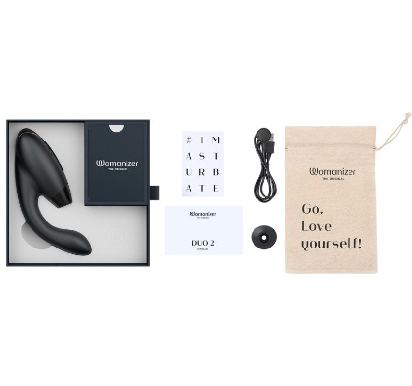 Подарите себе оргазм всего тела! DUO 2 — это уникальная премиум игрушка для двойной стимуляции, в которой стимулятор клитора с технологией Pleasure Air сочетается с мощным вибратором для точки G, обеспечивая потрясающий смешанный оргазм. Чем Womanizer DUO 2 отличается от других игрушек? DUO 2 — это не просто новая модель вибратора для двойной стимуляции, а единственная игрушка, обеспечивающая одновременно и стимуляцию клитора с помощью технологии Pleasure Air, и вибрации в точке G (10 режимов). Флагманский вибратор Womanizer для двойной стимуляции отличается инновационными функциями, приносящими максимальное удовольствие от оргазма всего тела. Два мотора с раздельным управлением обеспечивают разнообразие ощущений и индивидуальный контроль. Технология Pleasure Air обеспечивает идеальный баланс между пульсирующими и массирующими изменениями давления воздуха без соприкосновения с клитором. Такой подход предотвращает чрезмерную стимуляцию порядка 8 000 нервных окончаний и гарантирует восхитительный оргазм. Рабочая длина отростка - 7,6 см., диаметр - 3,2 см.