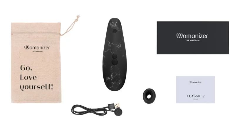 Женская привлекательность только тогда сильна, когда она естественна и стихийна. (c) Мэрилин Монро Лимитированная версия Womanizer Classic 2 Marilyn Monroe! Клиторальный стимулятор из крайне ограниченного тиража, в роскошном мраморном цвете Black Marble придется по вкусу самым взыскательным ценительницам чувственных удовольствий. Уникальная технология Pleasure Air теперь в новом утонченном и эргономичном корпусе Womanizer Classic 2 с покрытием из тактильно приятного, бархатистого силикона. Устройство имеет 10 режимов интенсивности работы. Начальный уровень теперь еще мягче и нежнее, а это значит, что новое устройство идеально подойдет девушкам с повышенной чувствительностью. Кроме того Womanizer Classic 2 оснащен инновационной технологией Afterglow, которая позволяет испытывать множественный оргазм балансируя на волне удовольствия. Подойдя к самому пику или после оргазма одним нажатием вы сможете моментально сбрасывать стимуляцию до самой нежной, а потом наращивать ее снова.