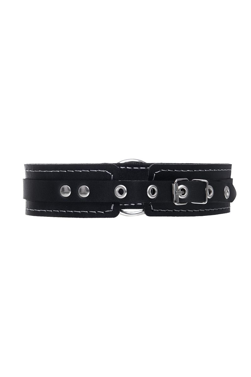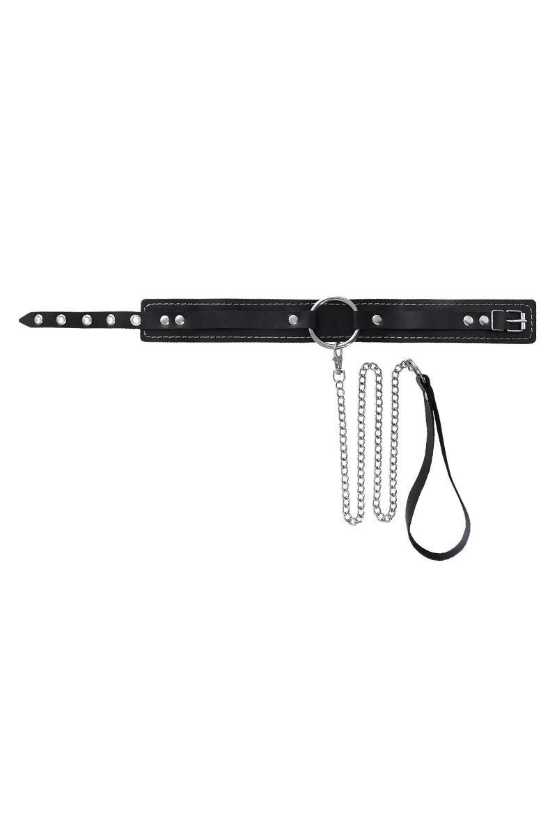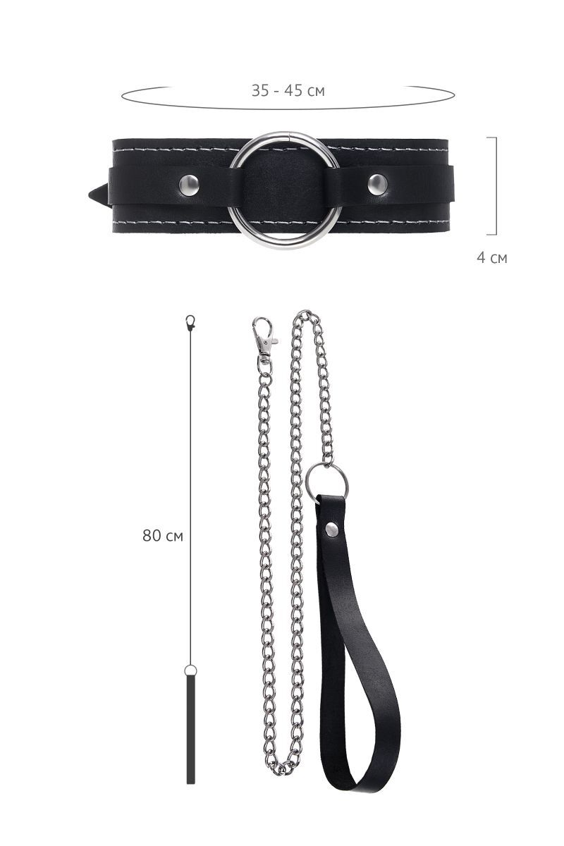 Для тех, кто хочет добавить изюминку в смелые ролевые игры…Двухслойный ошейник из черной натуральной кожи с белой строчкой отлично справится с этой сексуальной задачей. Девайс универсального размера. Ремешок оснащен 5 металлическими люверсами и надежным креплением. Дополняется одним кольцом, для фиксации поводка или других девайсов. В комплект входит поводок с металлической цепью. Подходит для воплощения всех Ваших смелых фантазий. Ширина ошейника - 4 см. Длина поводка - 80 см.