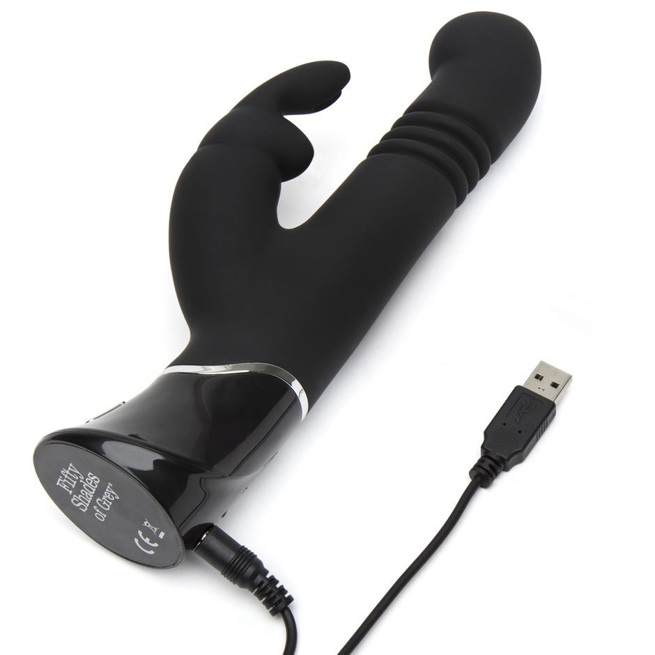 Черный хай-тек вибратор Greedy Girl Thrusting Rabbit Vibrator. 36 вариаций вибрации. Чуть изогнутый кончик для G-стимуляции. Функция толкания. Клиторальный отросток для усиления ощущений. Рабочая длина - 11,4 см.