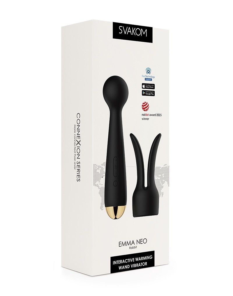 Данное устройство работает через Bluetooth, управляется с помощью приложения на телефоне. Используйте его как хотите и с кем хотите! Игрушку можно подключить к 2D интерактивным видео или использовать в вебкам-шоу! Emma Neo - это мощный, интерактивный, нагревающийся WAND-вибромассажер, с потрясающим дизайном. У игрушки есть насадка в виде потрясающих кроличьих ушек, используйте их для массажа вашей шеи, ушей, сосков и любых других чувствительных зон. Будьте креативны и выведите любовную игру на новый уровень! Устройство может нагреваться до 38°С, используйте его, чтобы согреться холодными зимними вечерами. Мощный мотор, время работы без подзарядки до 4 часов, 5 скоростей вибрации, 5+1 режим - это все про Emma Neo! Водонепроницаемая игрушка, легко мыть, а так же ее можно использовать в душе.