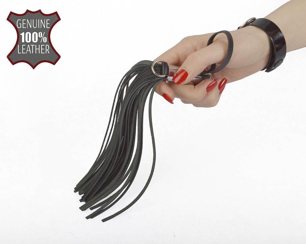 Кистевой флогер из натуральной кожи. Металлическая ручка.