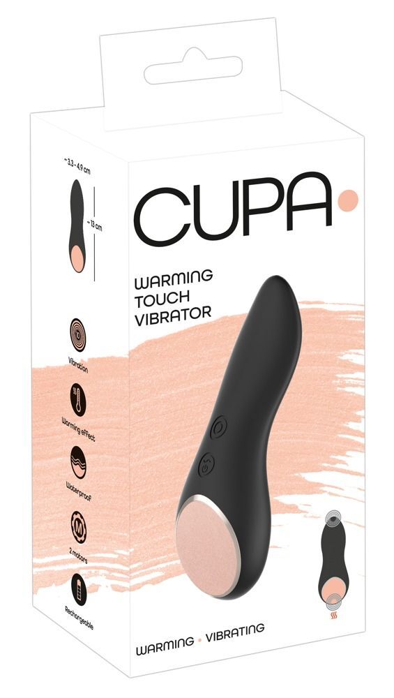 Вибратор Cupa Touch с подогревом. Массируйте и стимулируйте теплом и вибрацией! Накладной вибратор Вибратор Warming Touch, который можно использовать с обеих сторон для различных расслабляющих массажей всего тела. Обладая идеальной эргономической формой, легкий вес удобно лежит в руке и оптимально адаптируется к контурам тела своими контактными поверхностями. Вибратор Warming Touch массирует и балует вас мощными вибрациями и дополнительным теплом с одной стороны. 2 двигателя обеспечивают 10 режимов вибрации на каждом конце, а также нагрев. Каждый мотор можно удобно контролировать отдельно нажатием кнопки непосредственно на игрушке. Даже в/под водой, потому что сложная игрушка водонепроницаема.