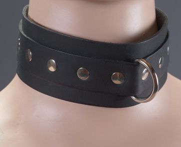 В БСДМ-практике ошейники используются не только в качестве красивого аксессуара, но и для подчинения «нижнего»,используется в качестве связующего элемента бандажа. Этот девайс обостряет ощущения и позволяет открыть новые грани чувствительности. Ошейник фирмы выполнен из жесткой натуральной кожи высокого качества и декорирован металлическими заклепками. Он оснащен D-кольцом, которое обеспечивает удобство крепления различных бандажных систем (карабины,веревки,лент). Застегивается bdsm ошейник на ремешок с пряжкой. Данный ошейник неподшитый, без подкладки. Поводок в комплект не входит, но Вы можете приобрести его у нас отдельно. Ширина ошейника - 5 см. Минимальный обхват шеи - 34 см, максимальный - 45 см.