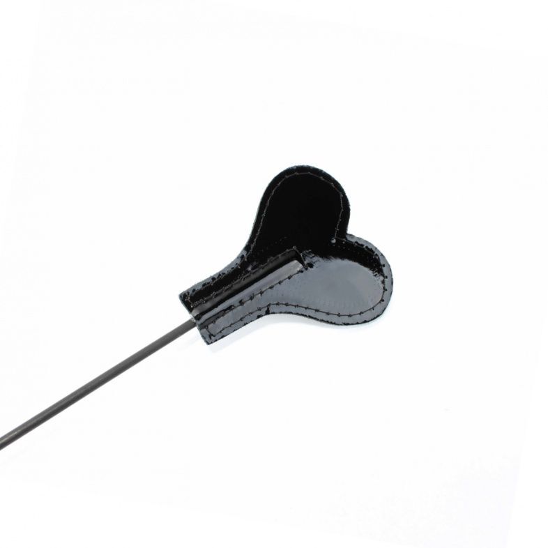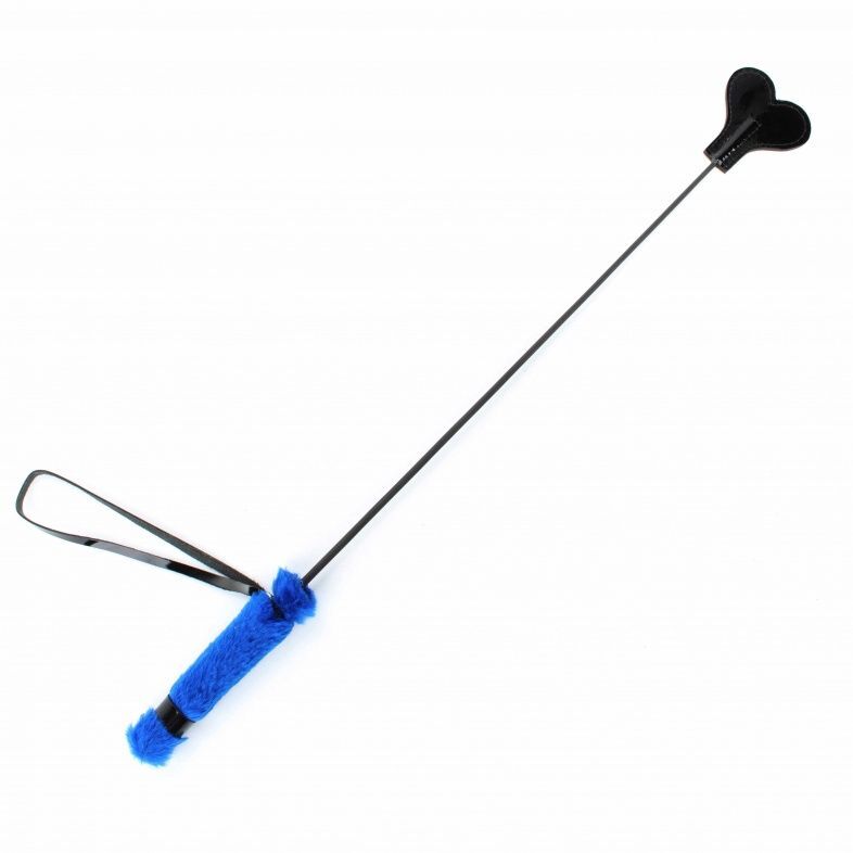 Стек с ручкой из синего эко-меха, перетянутой лаковыми кожаными пряжками, отлично подойдет для игр в стиле БДСМ. На рукоятке расположена петелька. Наконечник выполнен из натуральной лаковой кожи черного цвета в форме сердечка. Мягкий и гибкий, он сделает подчинение максимально приятным. Длина ручки - 14 см. Длина шлепка-сердца - 8 см.