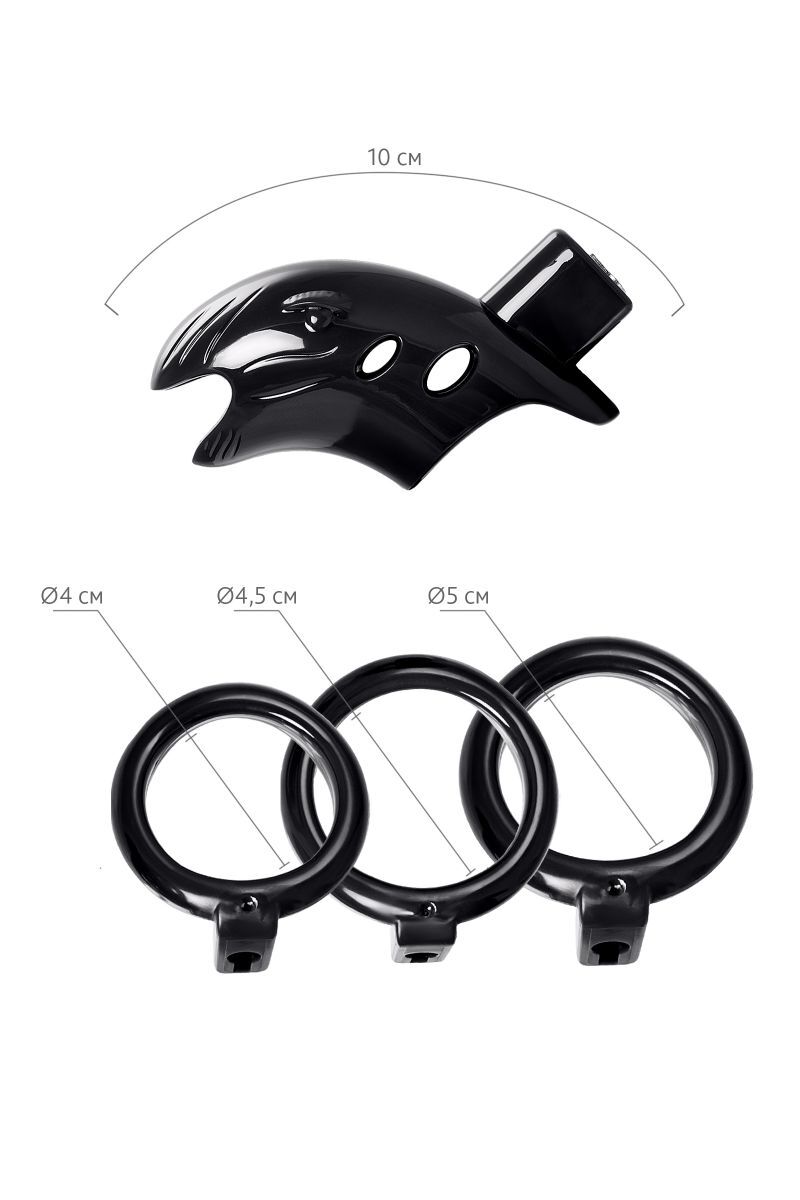 Идеальный инструмент для контроля и доминирования — пояс верности для него. Жесткая изоляция пениса гарантирована в этом устройстве. Никакой несанкционированной эрекции, пока половой член заперт на замок в этой пластиковой клетке, а ключ спрятан в потайном месте. Отверстие на конце делает возможным мочеиспускание, поэтому пояс подходит для длительного ношения. В комплекте три пластиковых кольца разного диаметра, подходящих для разных размеров пенисов и вариантов ношения. С этим девайсом вы всегда будете уверены, что сексуальная жизнь партнера подчиняется только вашим капризам и желаниям. Диаметр колец - 4, 4,5 и 5 см.