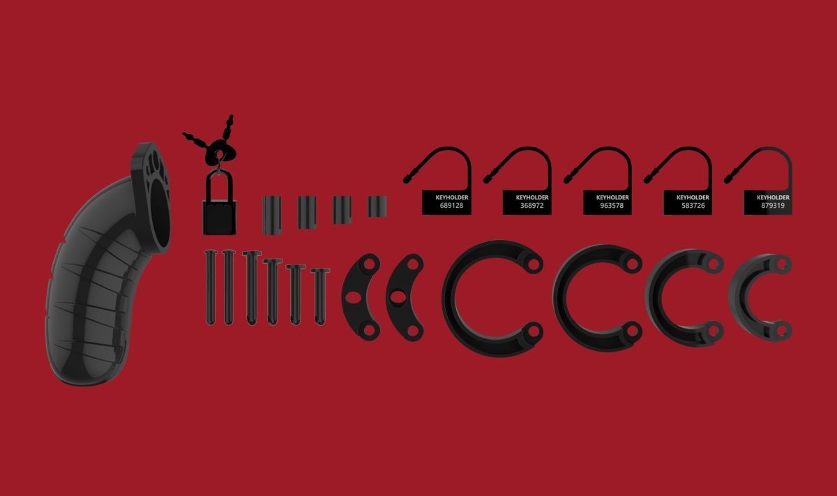 Cock Cage Model 04 Chastity 4.5 – специализированное приспособление для мужчин, предназначенное для предотвращения эрекции, полового акта или мастурбации. В комплект входит железный замок и тонкая гибкая лента высокой прочности. Благодаря легкому, прочному материалу пояс идеально подходит для долговременного ношения. Изделие состоит из нескольких разборных частей: клетки, кольца и штифтов, которые идеально сочетаются друг с другом. В комплекте к поясу идет 4 кольца разных диаметров для разных размеров и предпочтений. Просто выберете подходящий размер кольца, соедините его тремя штифтами, оденьте на средний штифт специальную втулку и соедините с клеткой. На центральном штифте есть специальное отверстие для замка. Выберете один из замков и зафиксируйте пояс. Фиксация тонкой гибкой лентой высокой прочности гарантирует, что металлоискатели на пояс не среагируют. Для поддержания надлежащей гигиены устройство снабжено вентиляционными отверстиями и отверстием для мочеиспускания. Диаметр клетки - 3,5 см.
