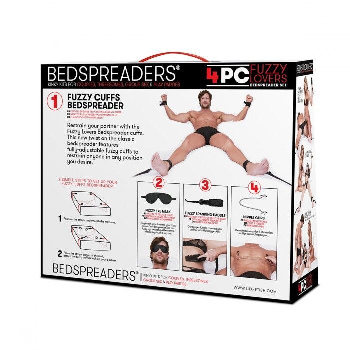 Подарите своему любовнику мягкую и чувственную игру, сделав его своим рабом с помощью этого плюшевого набора, который включает в себя фиксатор на кровать с подкладкой из искусственного меха, чтобы надежно и комфортно удержать вашего счастливого покорного. Пушистая маска для глаз мягко закрывает их, пока вы экспериментируете с восхитительным щекотанием нежной шлепалки и ощущением зажимов на сосках. Когда вы закончите играть, просто положите свои любимые игрушки в прилагаемую сумку для хранения. В комплекте: фиксатор на кровать с 4 манжетами, маска, шлепалка, зажимы на соски, сумка для хранения.