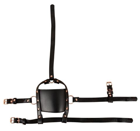 Качественный намордник с прочным шариком-кляпом. Он имеет стильный кожаный дизайн с металлическими элементами цвета розового золота. Ремни можно отрегулировать с помощью застежек-пряжек для идеально плотной посадки. Диаметр шарика - 4 см.