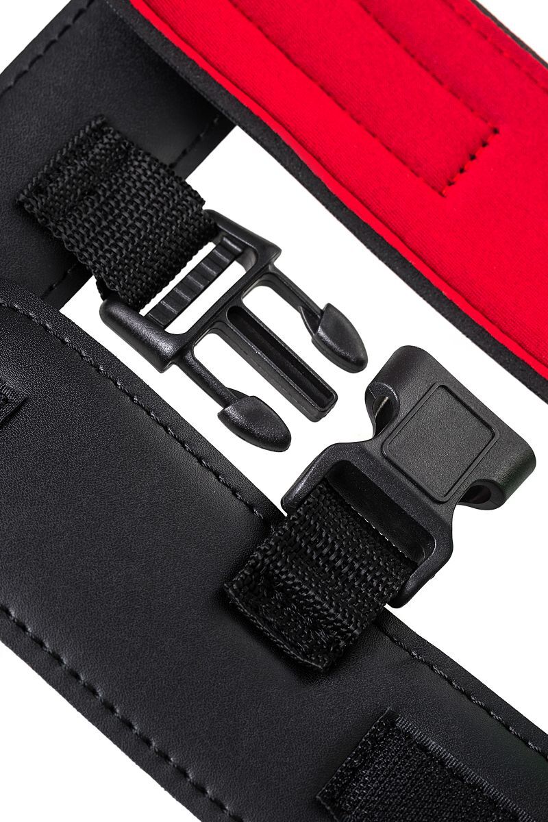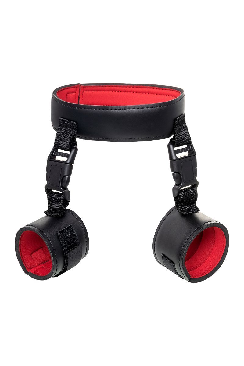 Современный комплект из мягкого материала комфортно обовьет шею и ограничит свободу рук. Застежка велкро (липучка) дает возможность использовать его партнером любого размера, так что меняйтесь ролями в зависимости от настроения! Пластиковые карабины на ошейнике и наручниках надежно фиксируют руки совсем рядом с шеей, не оставляя никакой свободы действий. С таким комплектом ограничить движения партнера легко в любом месте. Этот строгий аксессуар скрывает внутри страстный красный цвет так же, как вы скрываете свое увлечение БДСМ в обычной жизни. Управляйте друг другом, ограничивая свободу партнера, но не ограничивая своих сексуальных желаний. Длина ошейника - 44 см., ширина - 4,5 см. Длина наручников - 22 см., ширина - 6 см.