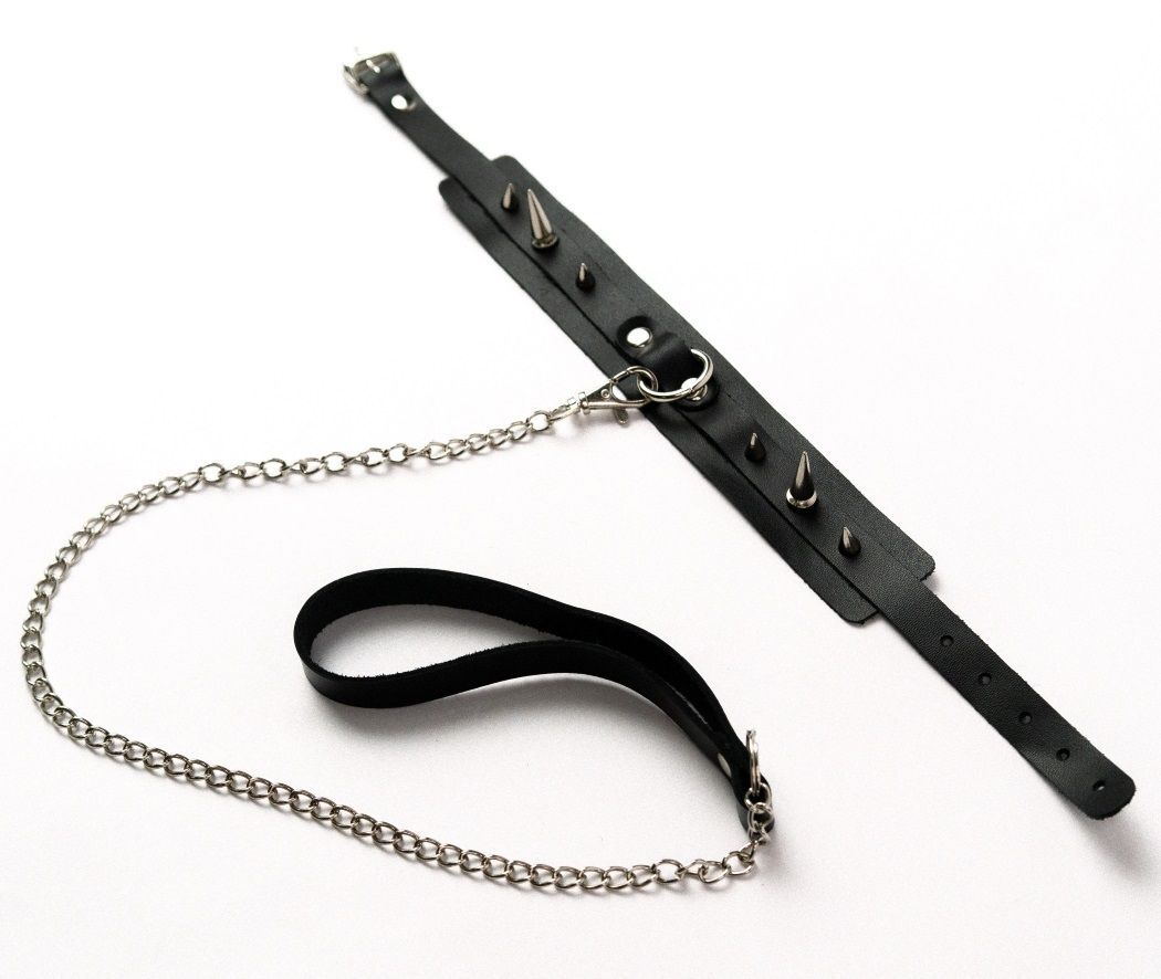 Черный ошейник с шипами и поводком