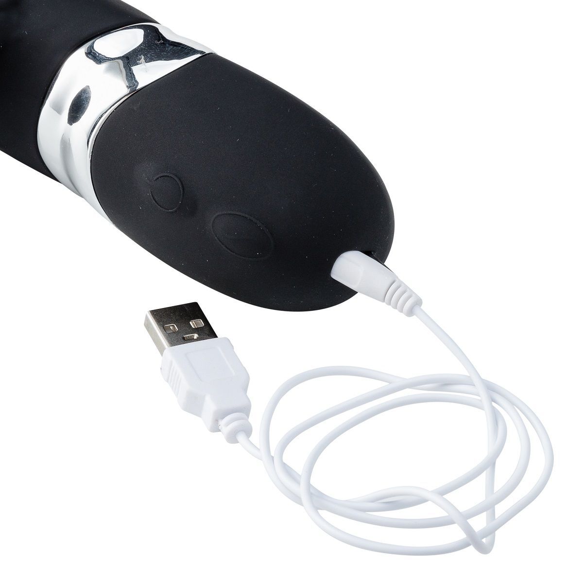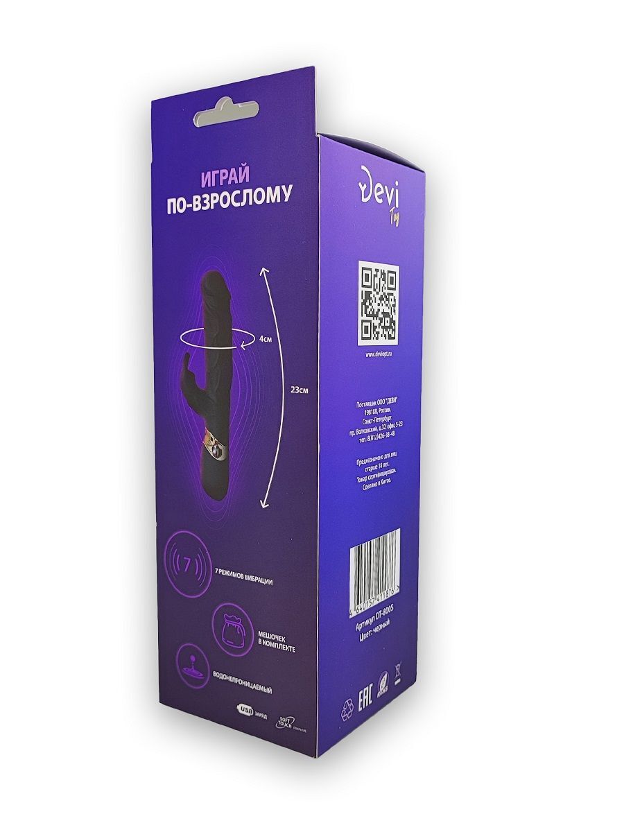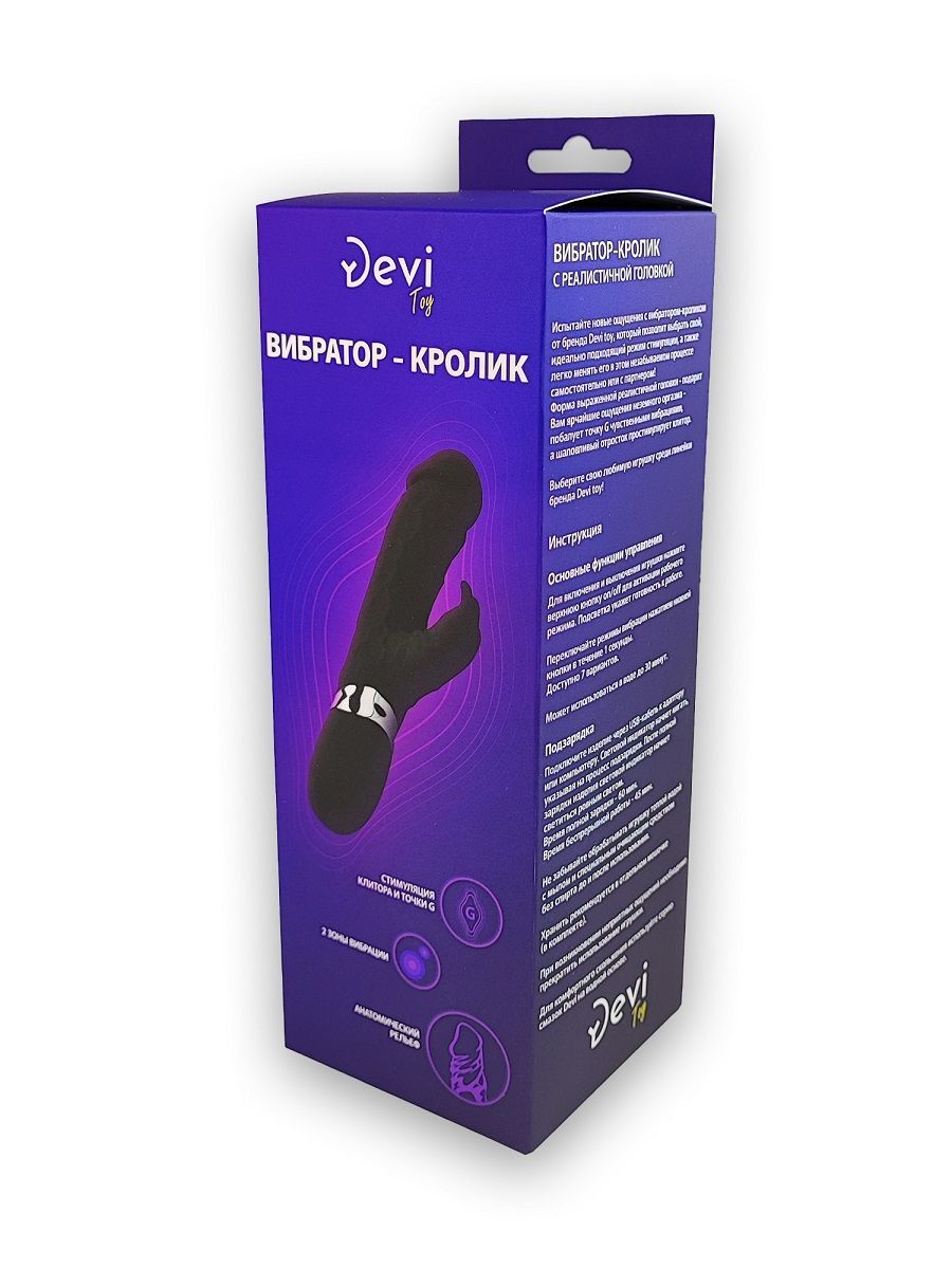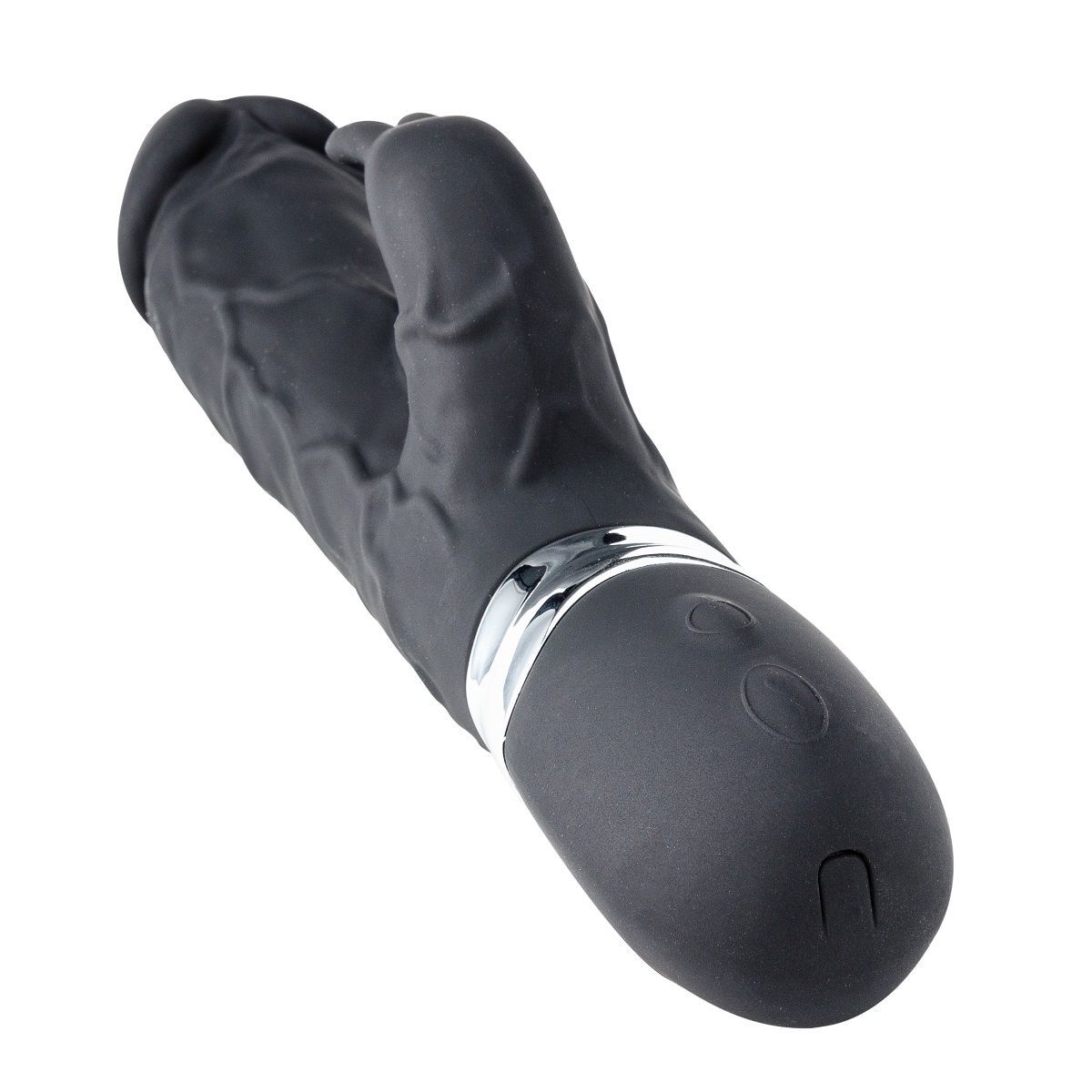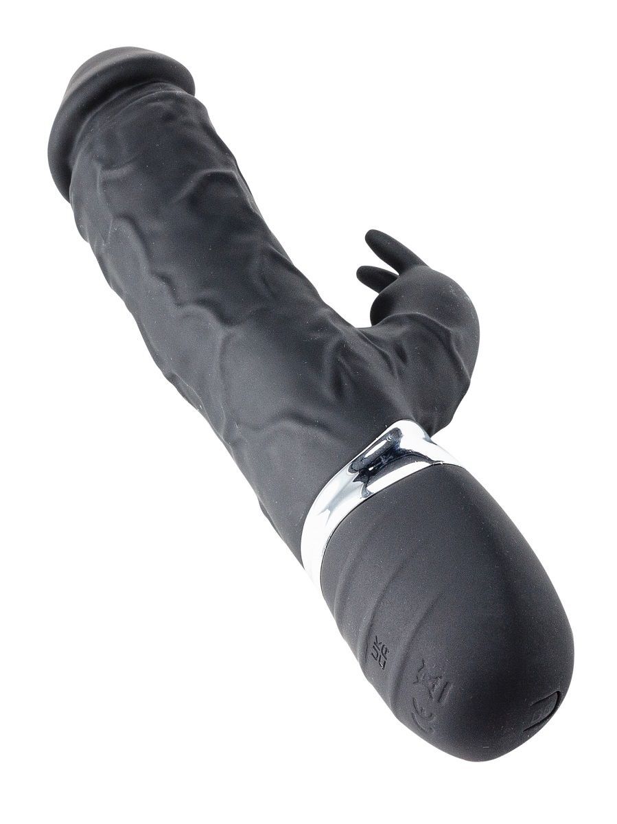 Черный реалистичный вибратор-кролик. Имеет 7 режимов вибрации. Выполнен из нежнейшего силикона. Перезаряжаемый, водонепроницаемый. В комплекте мешочек для бережного хранения.