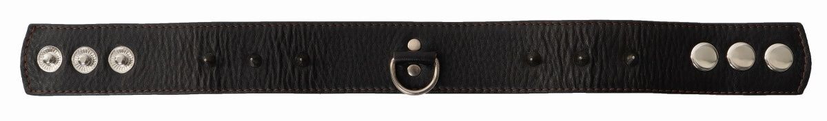 Ошейник с кольцом для подводка. Декорирован металлическими шипами и снабжен заклепками для регулировки объема.