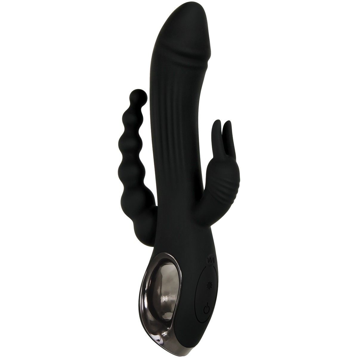 Откройте для себя самый интенсивный и глубоко удовлетворяющий оргазм из всех возможных! Стимулируйте сразу три эрогенные зоны, чтобы испытать потустороннее удовольствие, от которого у вас ослабеют колени. Реалистичный основной вал фаллической формы обеспечивает мощные внутренние вибрации, в то время как стимулятор клитора ускорит достижение кульминационного момента. Тем временем, анальный отросток мягко и постепенно проскальзывает в анус, чтобы завершить дразнящий трифект удовольствия! Найдите правильный ритм для вашего уникального вкуса, наслаждаясь тремя двигателями. • Нацелен на 3 эрогенные зоны для интенсивных оргазмов • Главный ствол фаллической формы • Стимулятор клитора в форме кролика • Анальный стимулятор с шариками • Гибкость • 3 двигателя • Главный стимулятор (вагинальный) управляемый независимо • Клиторальный и анальный стимуляторы управляются вместе • 10 мощных вибрационных скоростей и функций в каждом двигателе • Простая в использовании 3-кнопочная панель управления • Светодиодные индикаторы освещают кнопки при использовании • Изготовлен из гладкого силикона • Стильная черная хромированная ручка с кольцом • Без фталатов и латекса • Водонепроницаемый и погружной • USB магнитный перезаряжаемый, кабель в комплекте