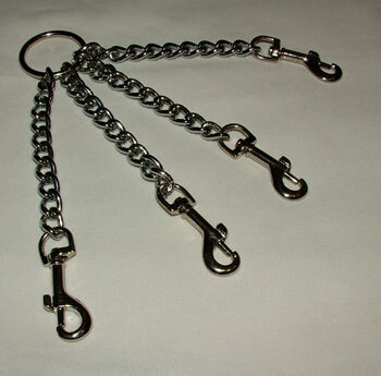 Четыре цепи с карабинами на кольце. Может использоваться для соединения наручей, поножей, также ошейника с наручами, поножами и т.д. Длина каждой цепи - 15 см.