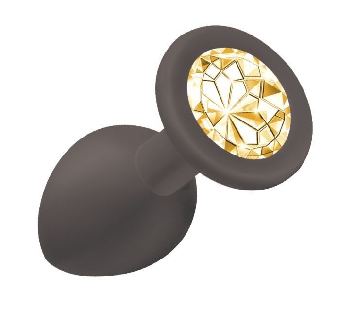 Чёрная анальная пробка Emotions Cutie Small с жёлтым кристаллом - 7,5 см.