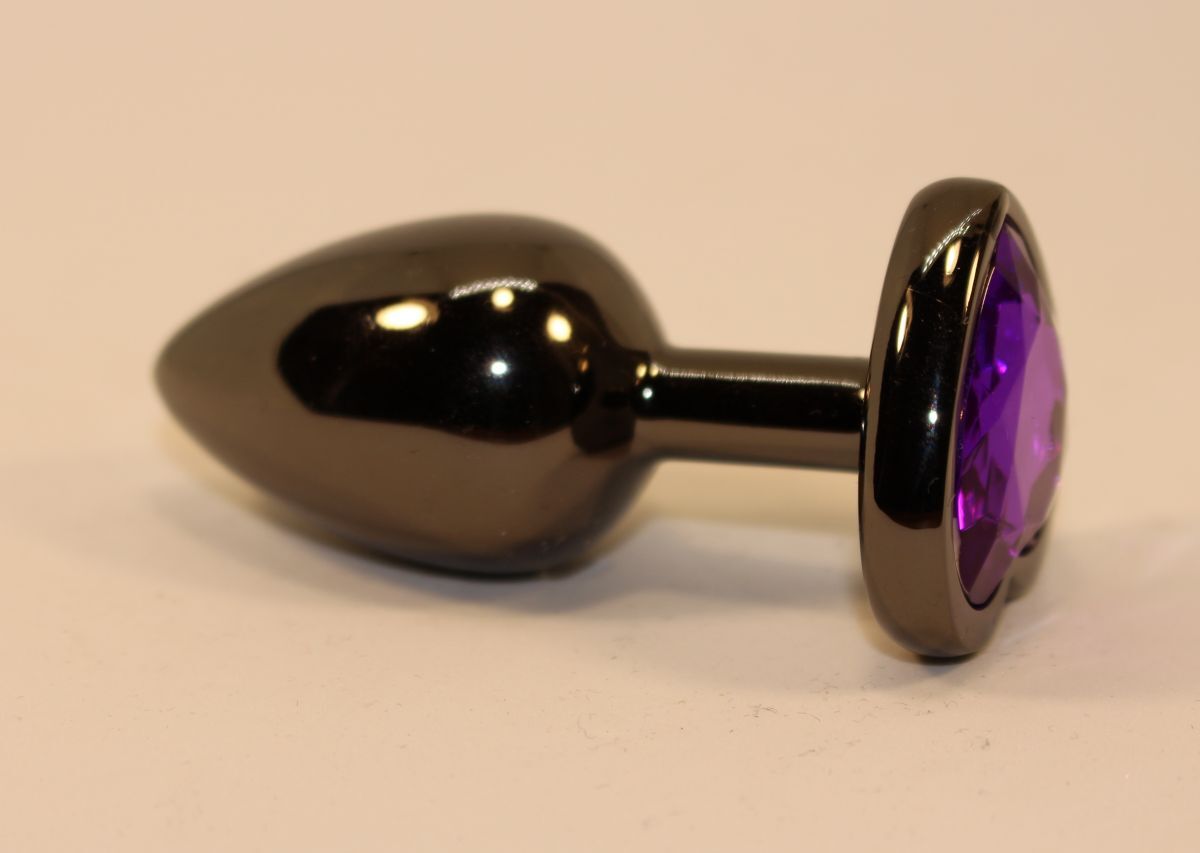 Чёрная анальная пробка с фиолетовым стразом - 7 см.