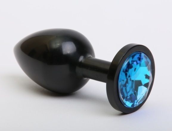 Чёрная анальная пробка с голубым стразом - 7,6 см.