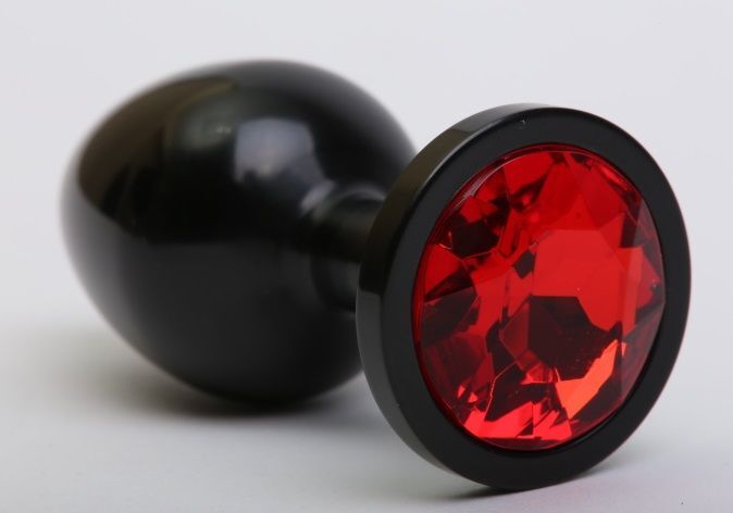 Чёрная анальная пробка с красным стразом - 8,2 см.