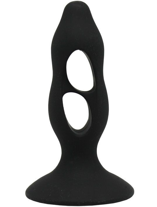 Чёрная анальная пробка с полостями для сжатия и легкого введения - 11 см.
