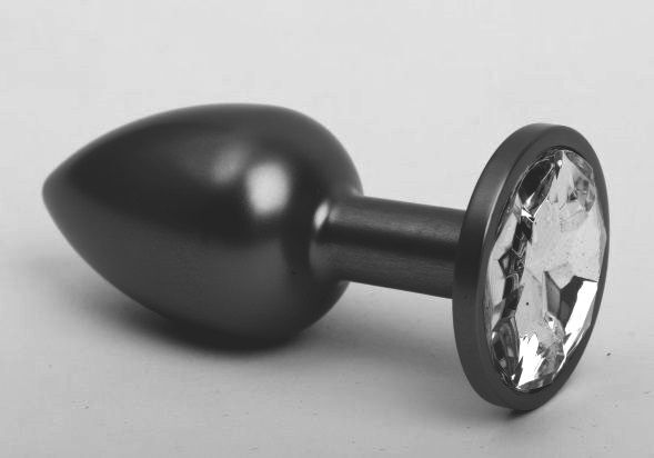 Чёрная анальная пробка с прозрачным стразом - 7,6 см.