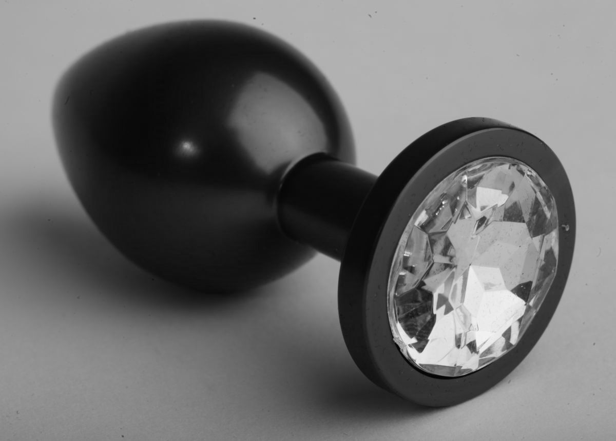 Чёрная анальная пробка с прозрачным стразом - 8,2 см.