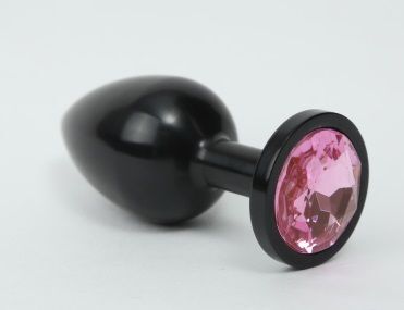 Чёрная анальная пробка с розовым стразом - 7,6 см.