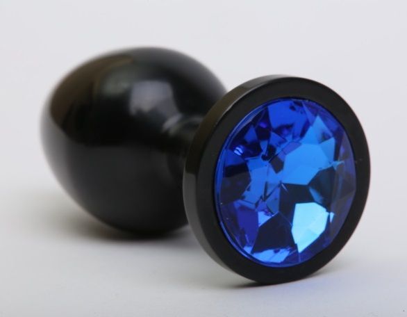 Чёрная анальная пробка с синим стразом - 8,2 см.