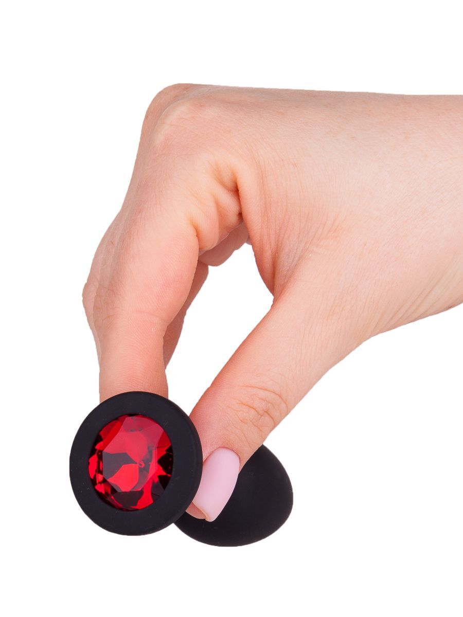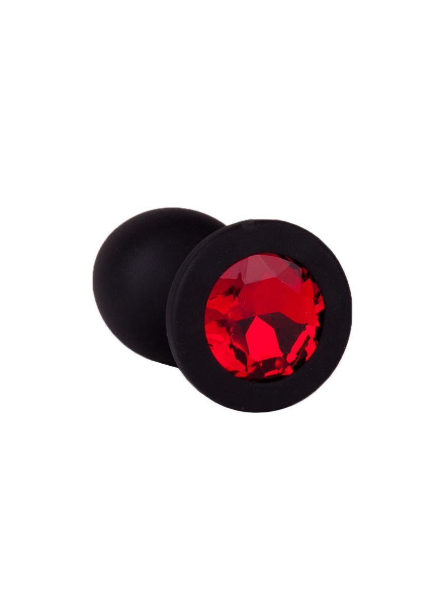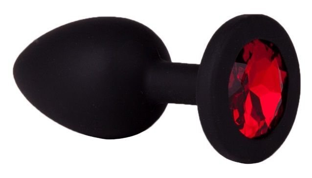 Чёрная анальная втулка с красным кристаллом - 7,3 см.