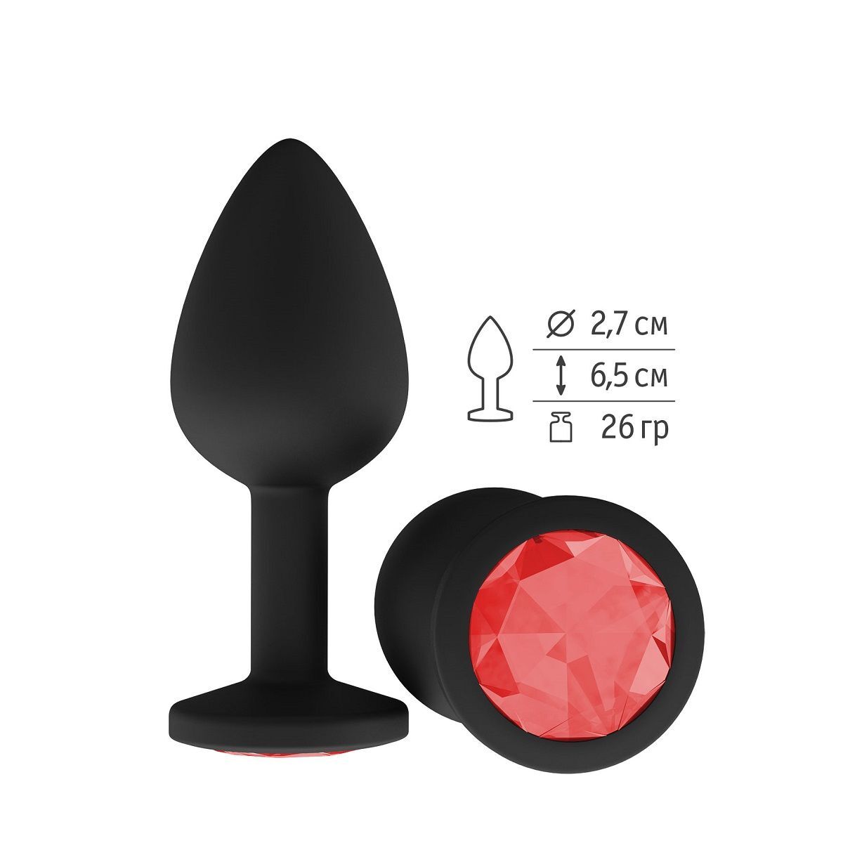 Гладенькая силиконовая пробка с кристаллом в ограничительном основании. Рабочая длина - 6,5 см. Вес - 26 гр.
