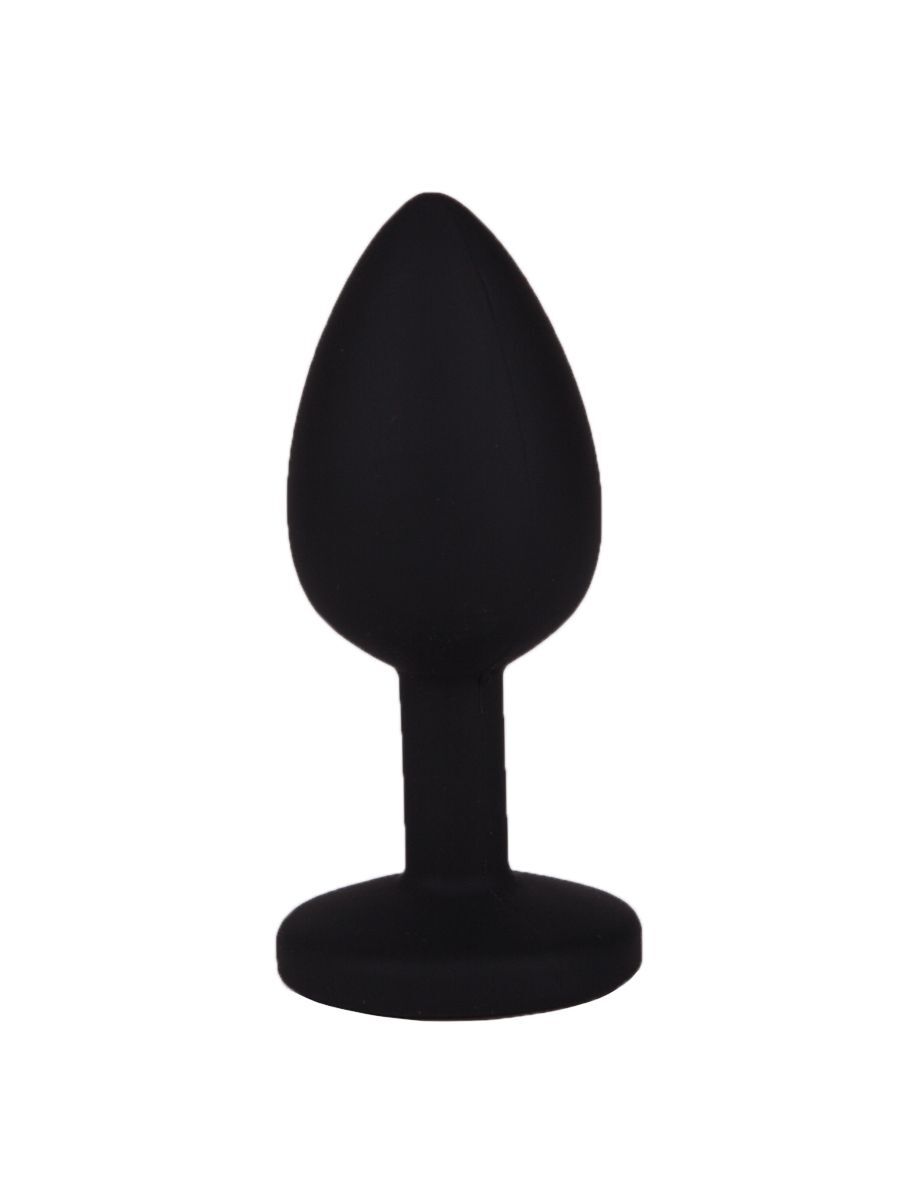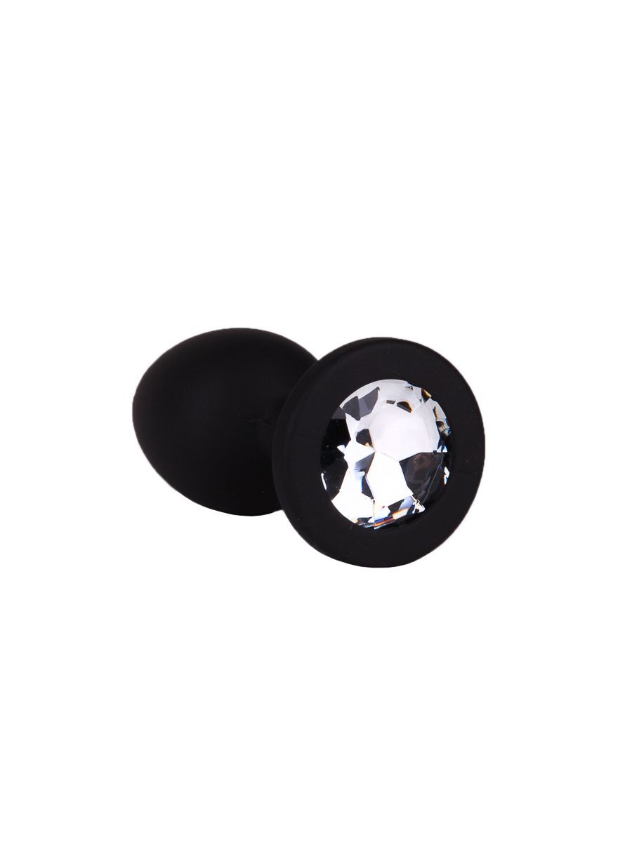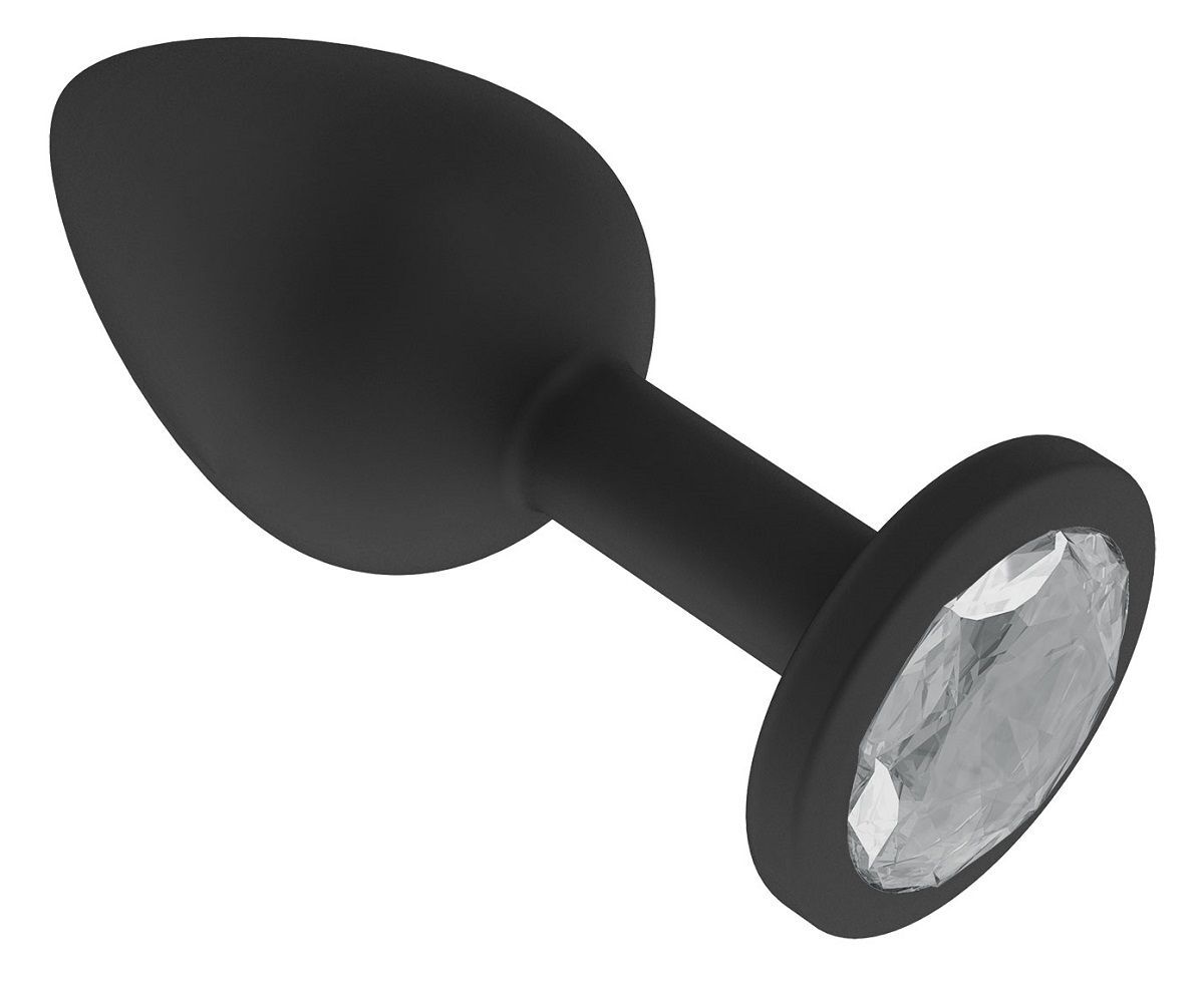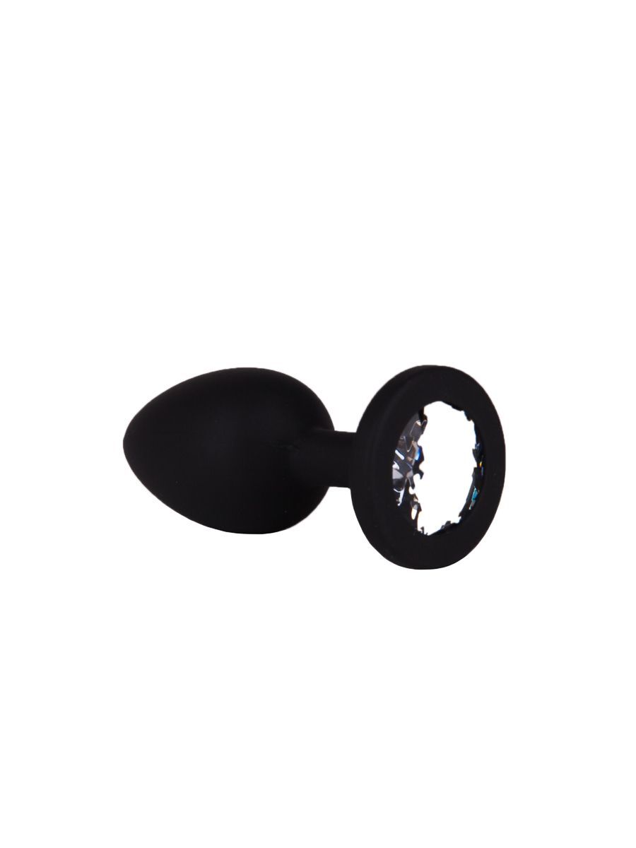 Чёрная анальная втулка с прозрачным кристаллом - 7,3 см.