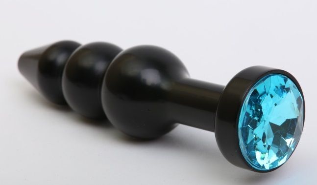 Чёрная анальная ёлочка с голубым кристаллом - 11,2 см.