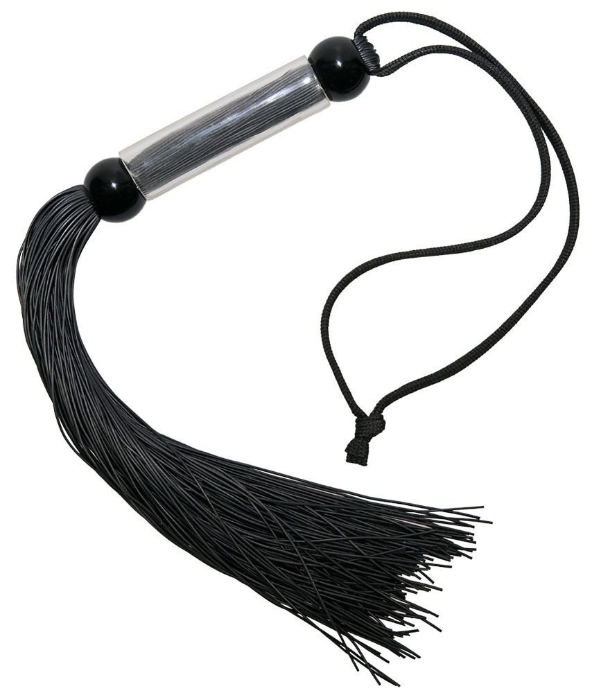 Чёрная мини-плетка с железной ручкой. Хвосты выполнены из силикона.