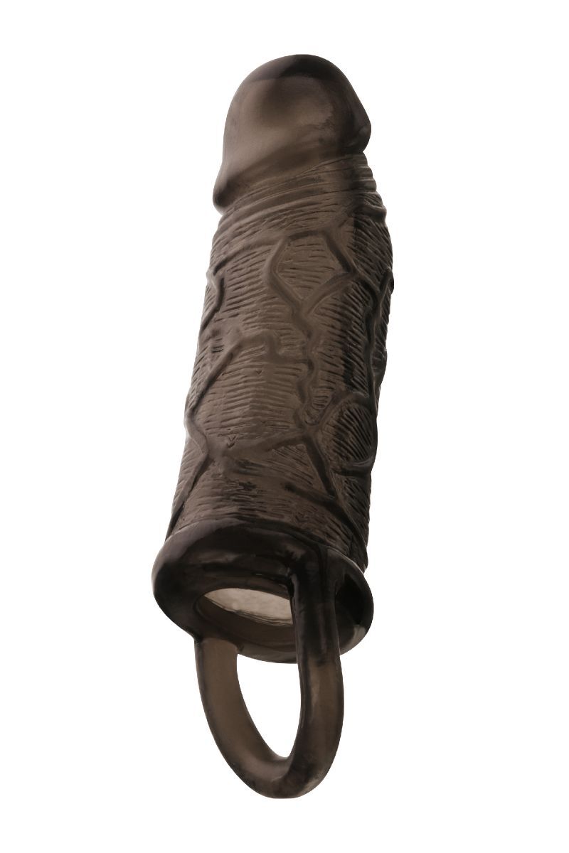 Чёрная насадка на пенис с подхватом мошонки