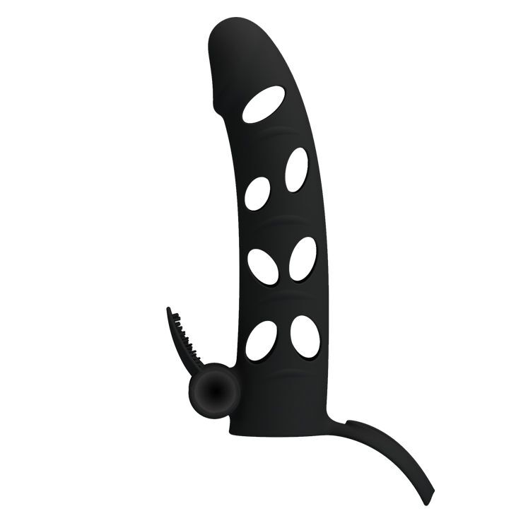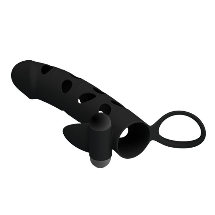 Насадка удлинитель с закрытой головкой, удлиняет член, с мягким кольцом под мошонку для задержки эякуляции и вибропулькой для пульсирующей стимуляции чувствительной женской зоны (клитора). Батарейки в комплекте. Прирост длины - 5,1 см. Минимальный внутренний диаметр - 2,5 см.