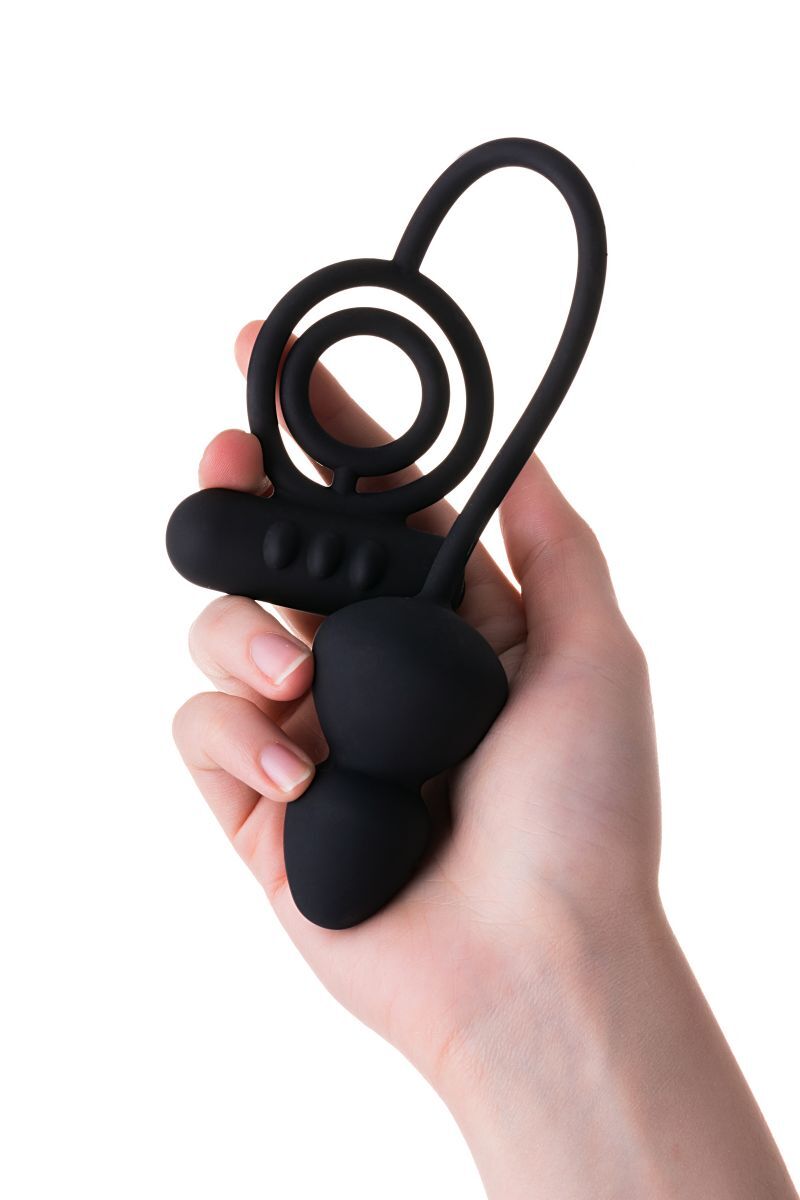 Чёрное эрекционное кольцо с вибростимулятором и анальным хвостом — это игрушка 4-в-1, делающая мужскую силу масштабнее, а удовольствие объемнее. Конусообразная анальная пробка дарит комфортную анальную стимуляцию и эффективный массаж простаты. Эластичное эрекционное кольцо продлевает и усиливает эрекцию. Кольцо для мошонки улучшает эякуляцию и делает оргазм мощнее. Влагостойкая вибропуля посылает захватывающие вибрации и делает ваш пенис тверже, чем когда-либо. Диаметр подхвата для мошонки - 4 см. Длина анальной пробки - 6,5 см, диаметр - 4 см.