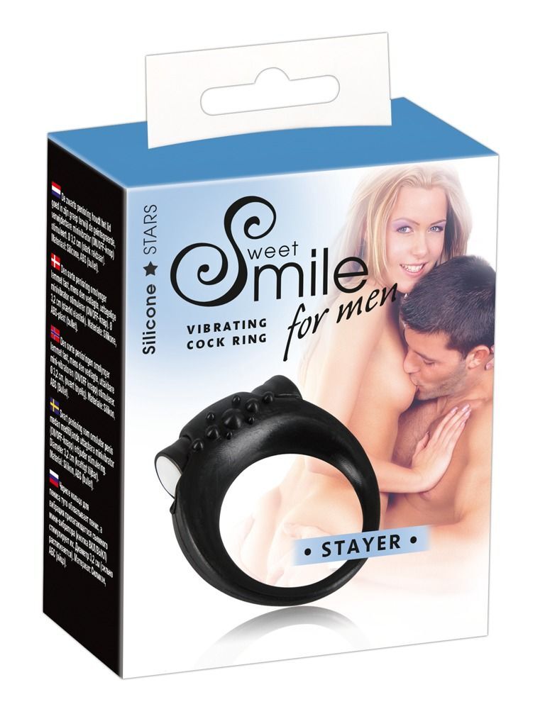 Чёрное виброкольцо для пениса Stayer. Два варианта ношения.