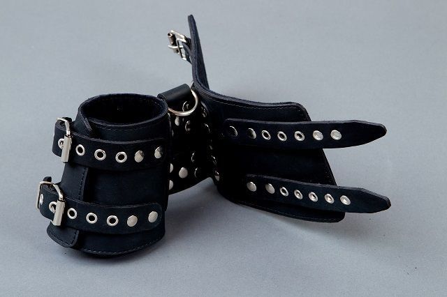 Оригинальные наручники ручной работы — это ваш помощник в реализации самых необузданных БДСМ-фантазий. Они не нарушают кровообращение, просты в применении и обеспечивают надежную фиксацию. Данная модель изготовлена из натуральной кожи и декорирована металлическим заклепками. Мягкая подкладка уменьшает вероятность натирания кожи во время использования. Изделие имеет широкое кожаное соединение с D-образным кольцом для бандажных систем. Ширина - 10,5 см.
