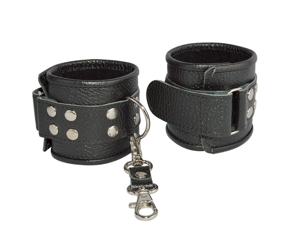 Изготавливаются из натуральной кожи с велюровой подкладой. Легко застёгиваются и расстёгиваются с помощью «липучки». Между слоем основы и подкладой проложена мягкая прокладка. Соединяются между собой коротким ремешком с двумя карабинами на концах. Не нарушают кровообращение, надёжно фиксируются на запястьях. Размер универсальный.