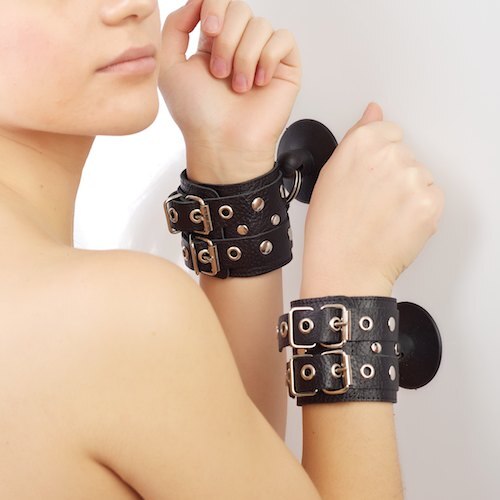 Наручники изготавливаются из натуральной кожи с велюровой подкладой. При изготовлении использована фурнитура с никелевым покрытием. Между слоем основы и подкладой проложена мягкая прокладка. Не нарушают кровообращение, надёжно фиксируются на запястьях с помощью двух ремешков. Размер универсальный.
