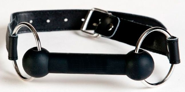Чёрный кляп-трензель на кожаных ремешках
