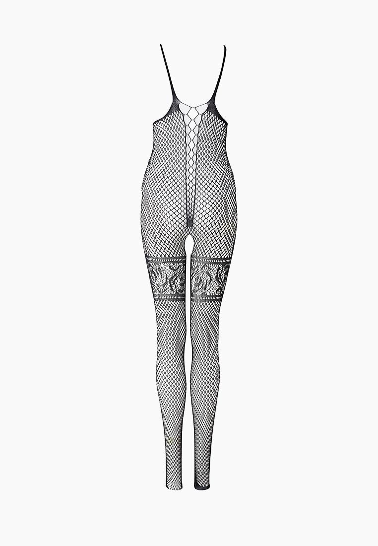 Чёрный комбинезон в сетку с ажурным рисунком. С интимным доступом. Нежный, приятный на ощупь материал позволит вам чувствовать себя комфортно, а уникальный дизайн модели не даст отвести от вас взгляд. Благодаря уникальному пошиву и дизайну боди-комбинезон визуально стройнит фигуру, а также подчеркивает все самые аппетитные части тела. Трусики не входят в комплект!