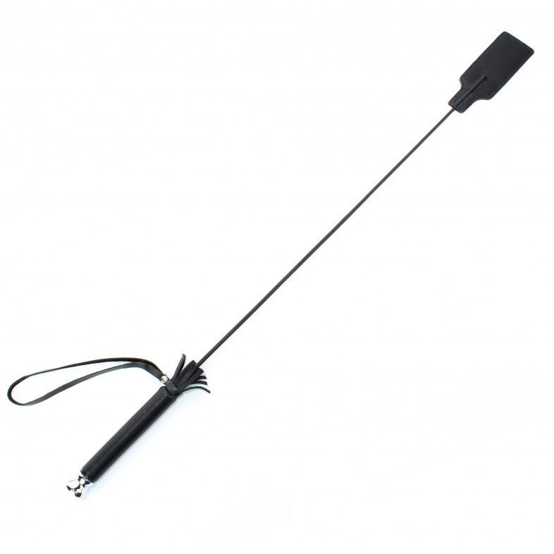 Рукоятка стека выполнена из натуральной кожи черного цвета, на конце девайса расположен кожаный шлепок. На рукоятке расположена петелька. Легкий, гибкий, практичный стек доставит максимальное удовольствие партнерам от БДСМ игры. Размеры наконечника - 8 х 4 см.